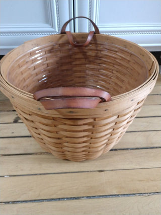 Vntg 1995 Longaberger LG Corn Basket Leather Handles w liner Price Firm