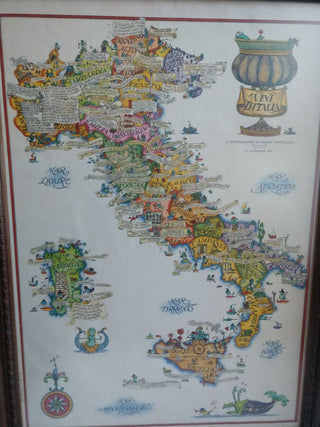 Framed Vintage Italian Wine Map Poster Vini D'italia 1970's
