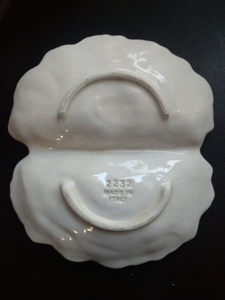 Divided Serving Platter Olive Nut Dish Leaf Textured Veggies Made in Italy.