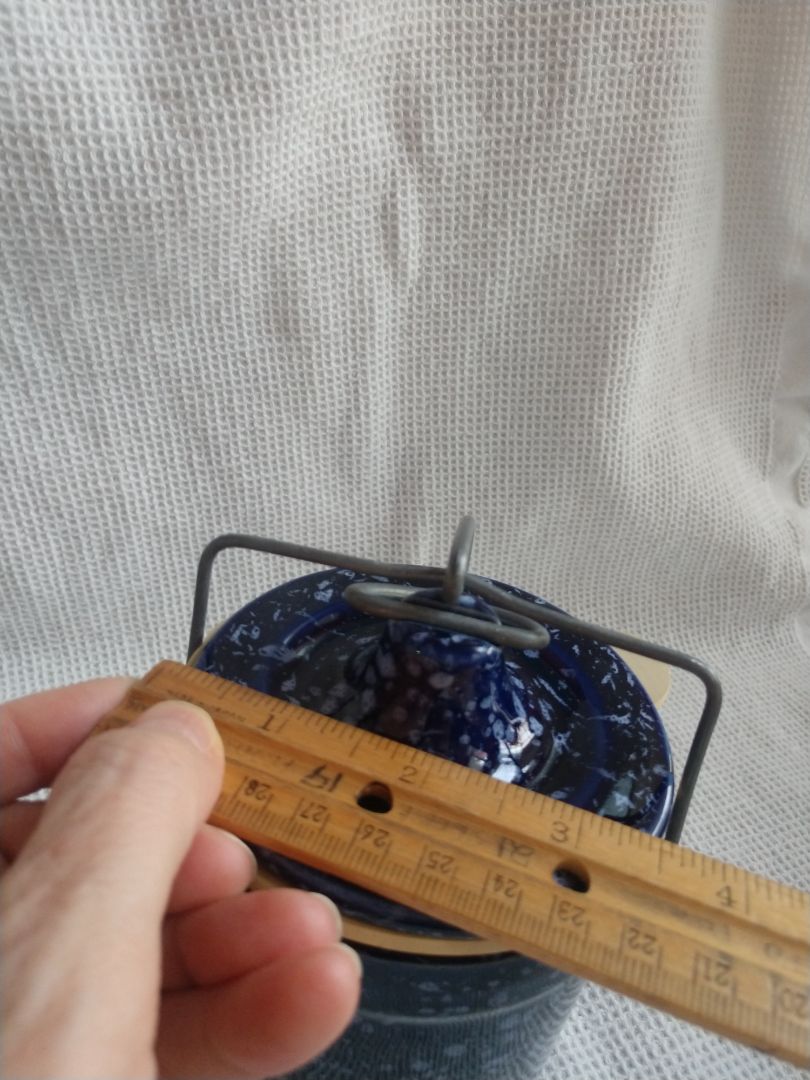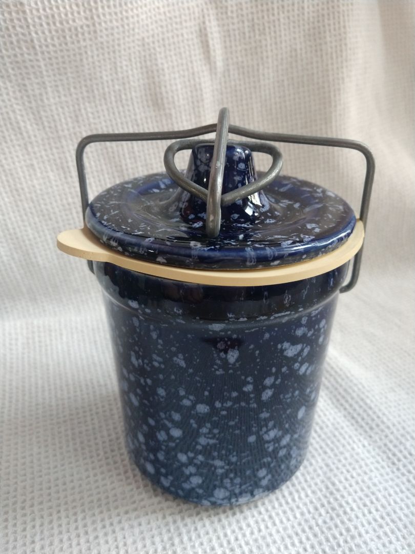Pottery Stoneware blue and white speckle Canister Jar with latching Lid w gasket
