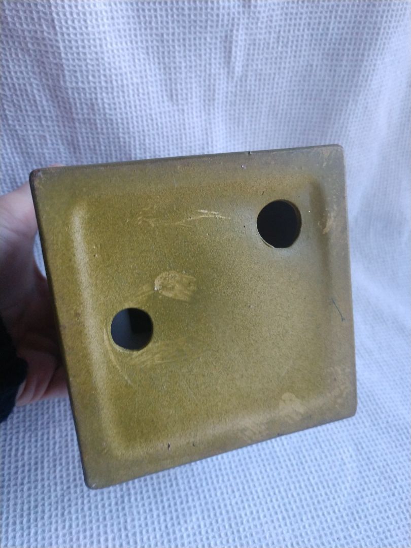 Vntg Green Candle Holder 1970's w gold glitter candle