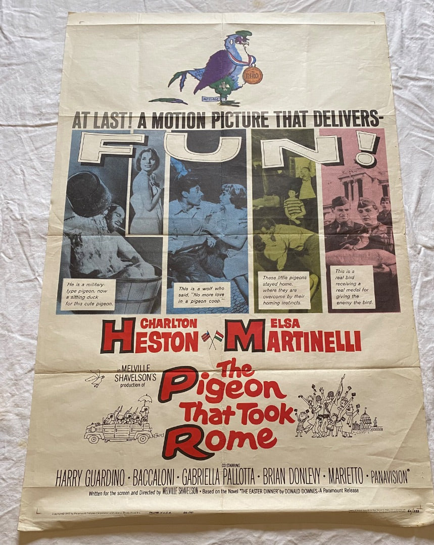 Vintage 1962 The Pigeon that took Rome movie poster numbered 62/333 unframed AS IS with minor edge wear