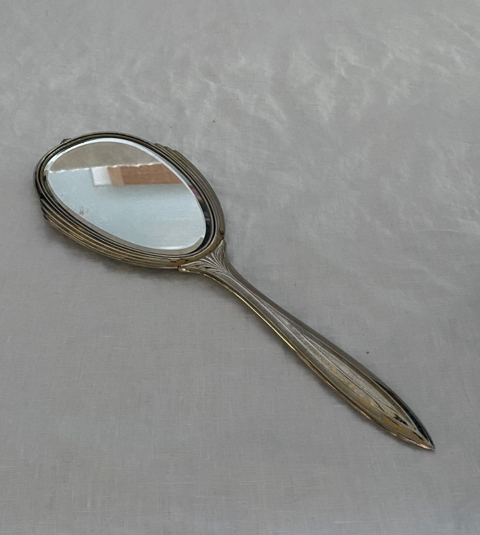 Vintage Art Deco metal hand mirror AS IS with wear on surfaces