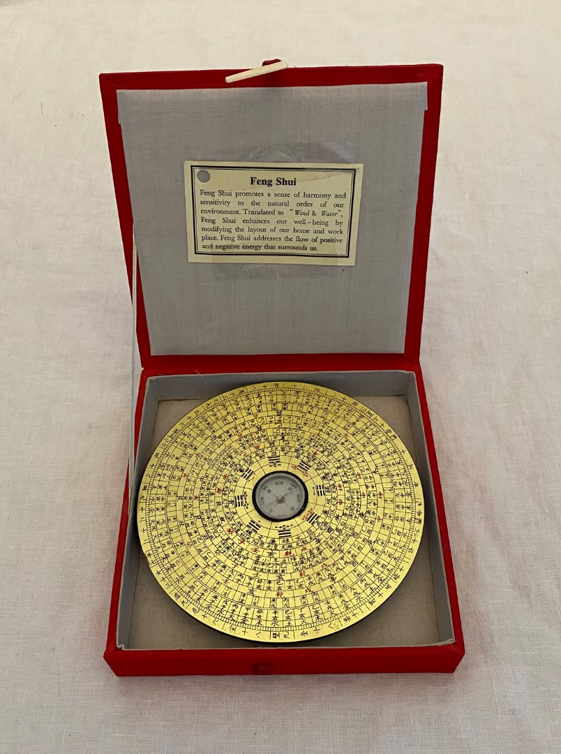Vintage Feng Shui compass in silk box 6”x6”x1.5”