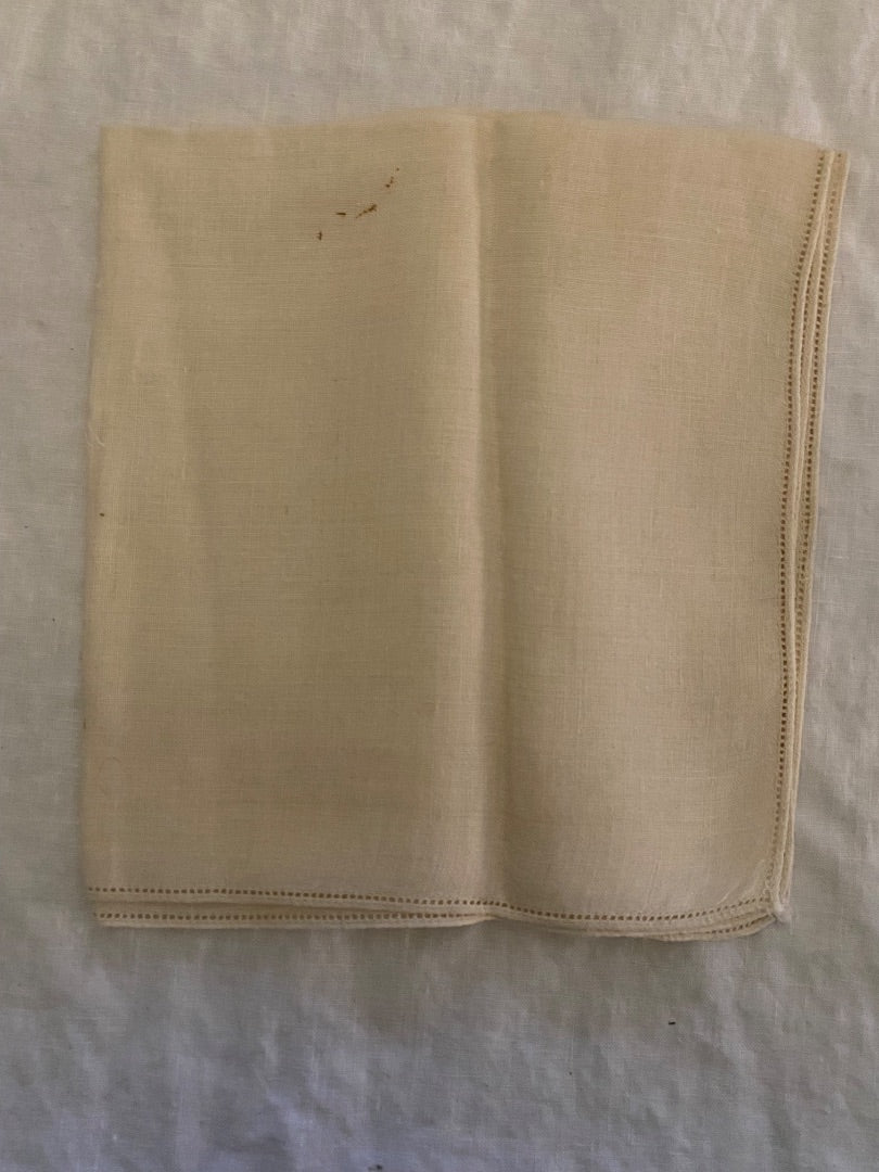 • Vintage linen napkins with embroidered cut work edging AS IS with 1 spotted napkin