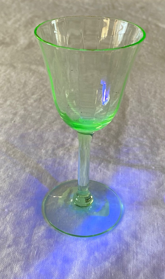 Vintage Uranium Tiffin-Franciscan green panel optic glasses (set of 6) AS IS with minor chips on base. Glow in UV light.
