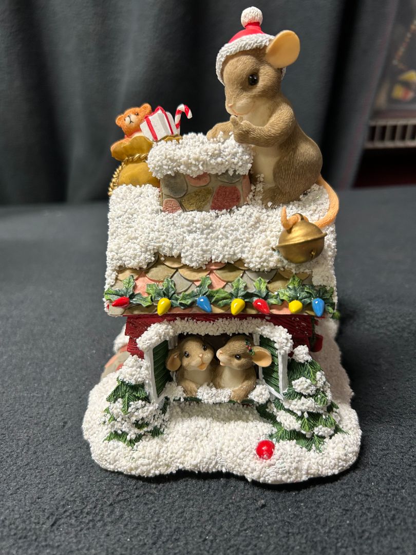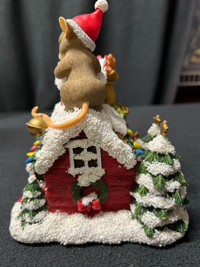 • Gently used with darling details and lots of fun characters. Music box plays: Here Comes Santa Claus.