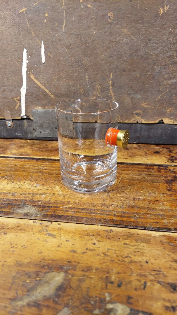 • This Shotgun Shell Rocks Glass is a unique and distinctive way to enjoy a beverage. Handcrafted piece, glass is embedded with a real Federal Premium® 12 gauge shotgun shell casing. Perfect for special occasions or everyday use, can be customized with engraved message.