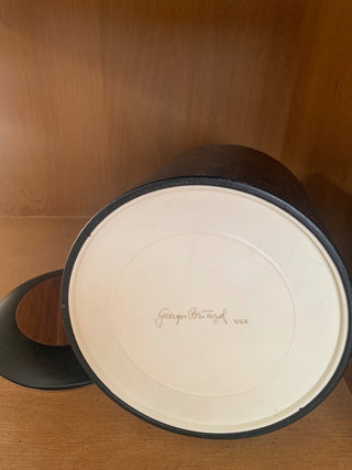 MCM Georges Briard Faux Black Leather and Teakwood Ice Bucket