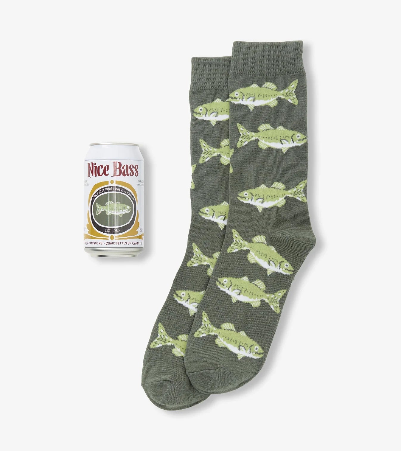 Reel in a gift that’s guaranteed to get a laugh. The Nice Bass Men’s Socks come packaged in a novelty beer can, making them the perfect combo of humor and everyday comfort. With a playful bass design and cozy fit, these socks are made for guys who love fishing, beer, or just a good dad-level pun.
