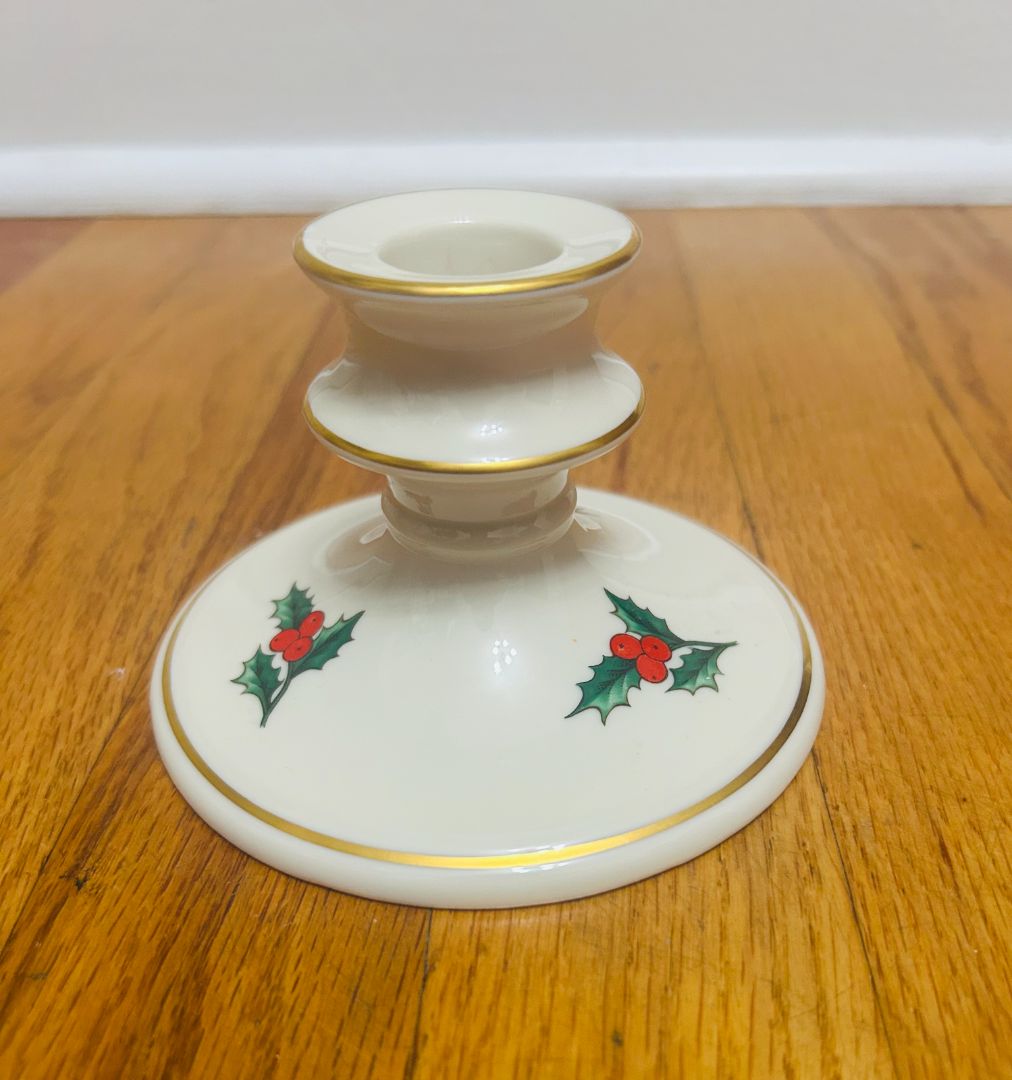 Vintage Pickard China Christmas Candlestick holder with holly pattern