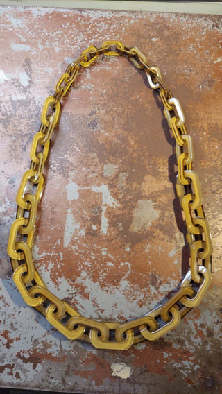 Rara Avis by Iris Apfel "Chained" necklace, tan resin. Designer chunky retro style necklace