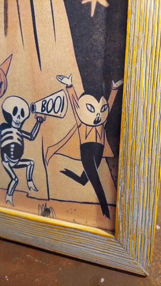 Retro Halloween celebration scene - rustic framed print