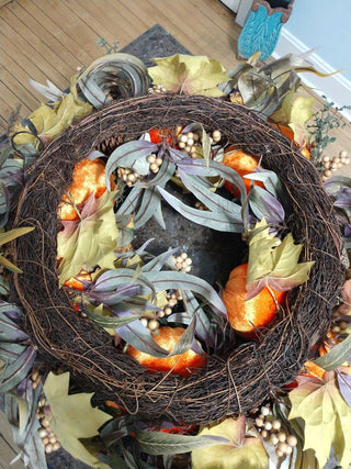 24"Wide x 6" Deep Fall Wreath for Front Door, Pumpkin Wreath