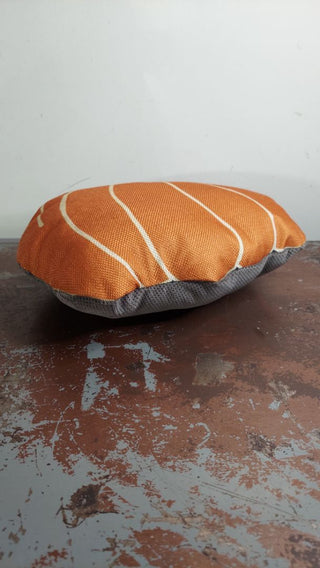 9" Linen & Faux leather cottage pumpkin decorative accent pillow - locally made