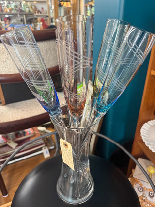 Vintage, Laura glass ,Allegro 7 piece champagne flutes with vase