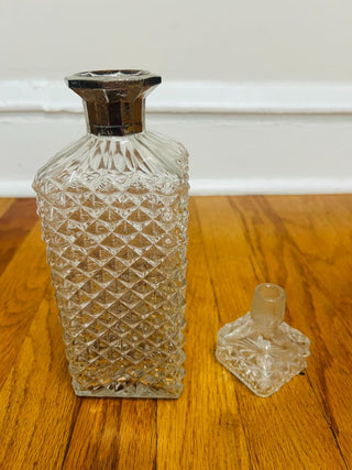 Vintage Cut Glass Decanter Diamond Pattern 10" X 3"
