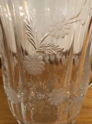 Vintage Glass Etched Pitcher Floral Daisy Design
