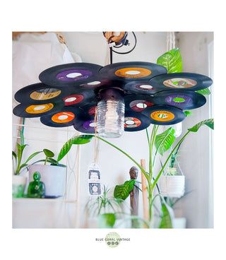 The Vinyl - Record Pendant Lamp. Upcycled Vintage 45 RPM Vinyl Records lighting - plug in cord, bulb included. (AS-IS)