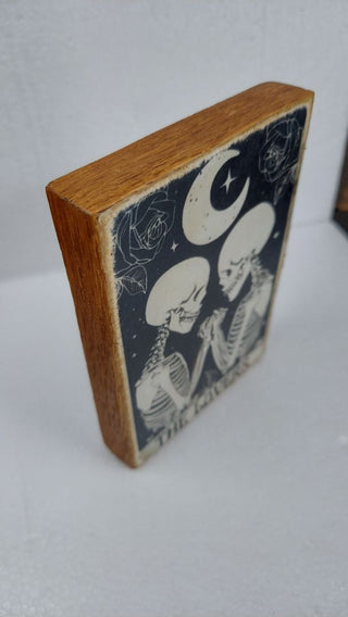 The Lovers Tarot Art - Artisan Crafted Art On Wood - Red Oak Veneer Framing Table Wall Art