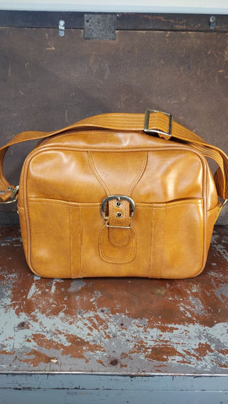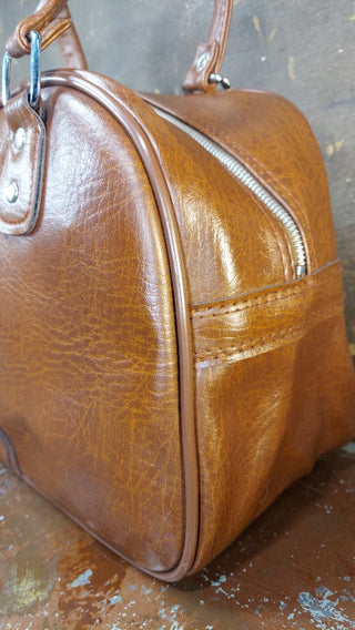 1950s Brown Vinyl Weekend Travel Shoulder Tote Bag Luggage Case by R. F. Woolworth Co. (As-Is)