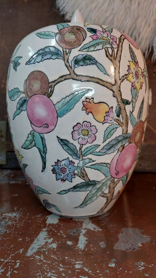 Blooming Plum Tree Temple Jar By WBI China. Chinese Chinoiserie enameled porcelain canister