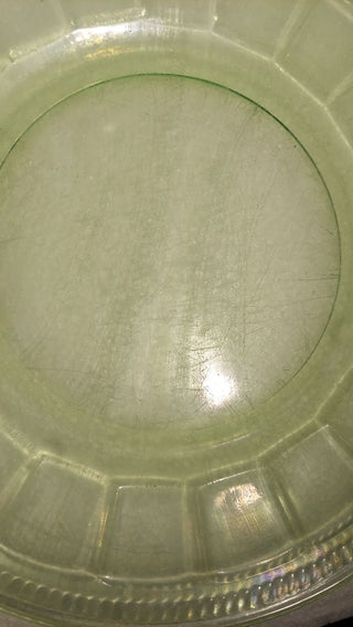 Uranium Glass - 1928 - 1933 Colonial Fluted Green Luncheon Plate WELL WORN by Federal Glass (AS-IS)