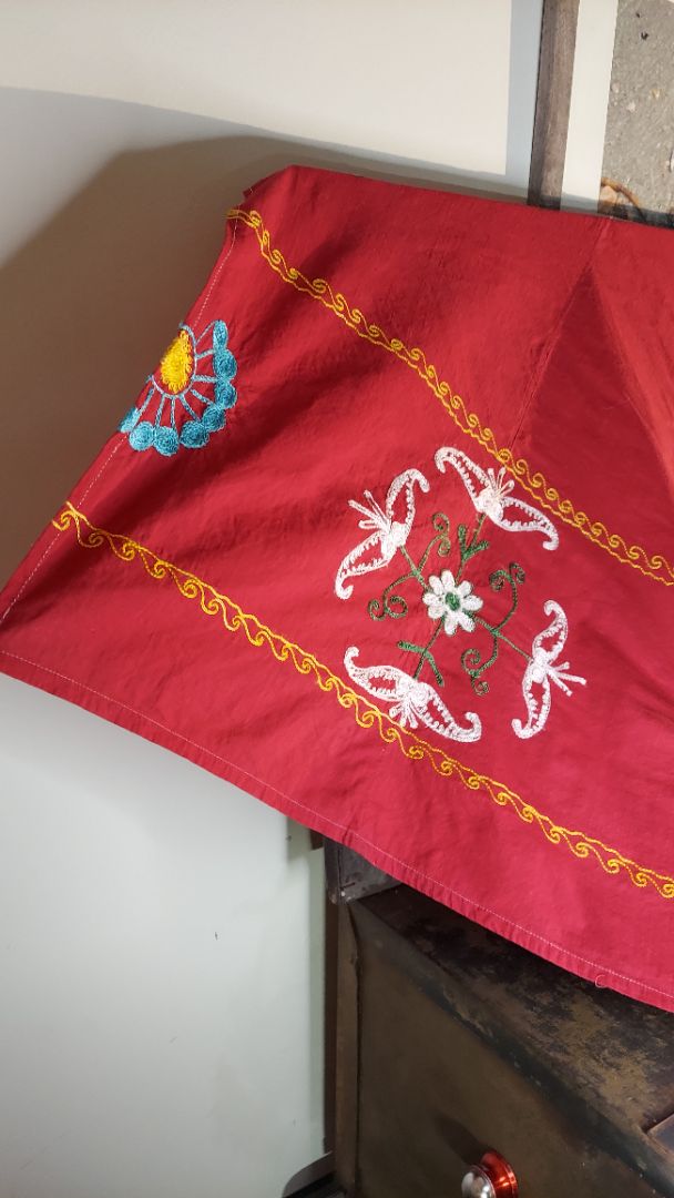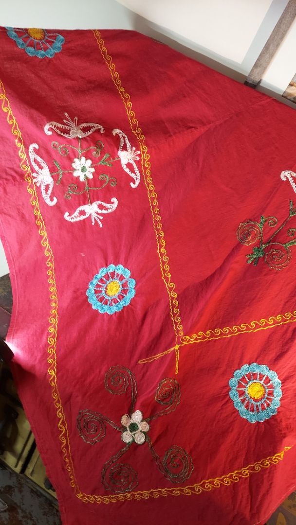 Midcentury Gorgeous Suzani embroidered console table side table corner half tablecloth (As-Is)
