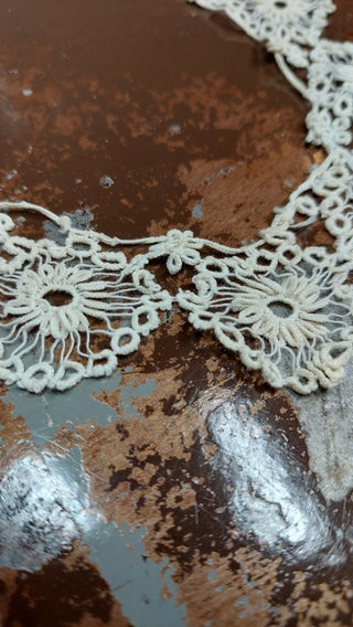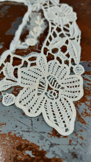 Edwardian Floral Scalloped - Antique Handmade Lace Collar Neck Trim (As-Is)