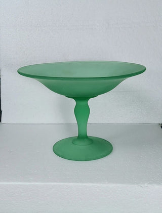 1930s Art Deco Green satin uranium glass footed compote by Tiffin (As-Is)