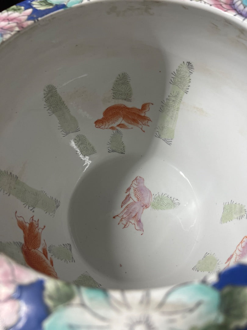 Famille Rose Porcelain Fish Bowl Planter with Swimming Goldfish Inside