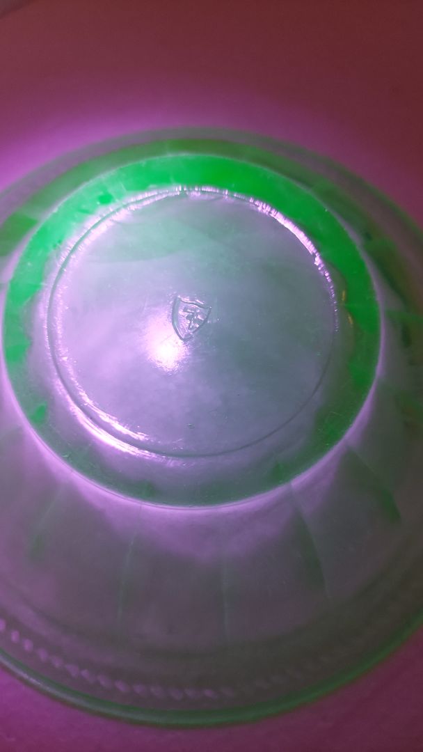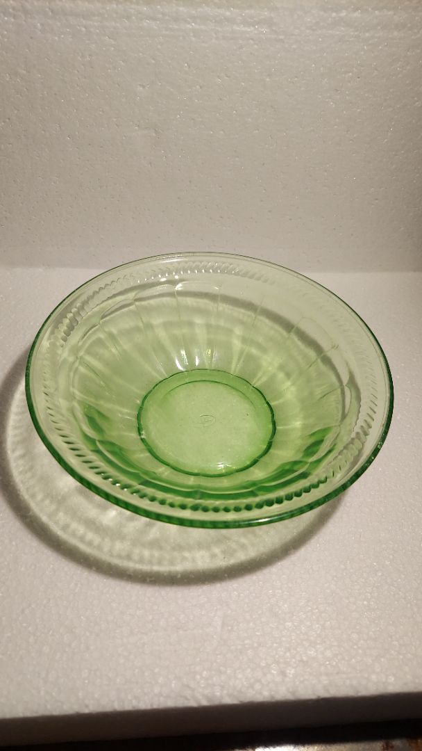 Uranium Glass - 1928 - 1933 Colonial Fluted Green Cereal Bowl WELL WORN by Federal Glass (AS-IS)