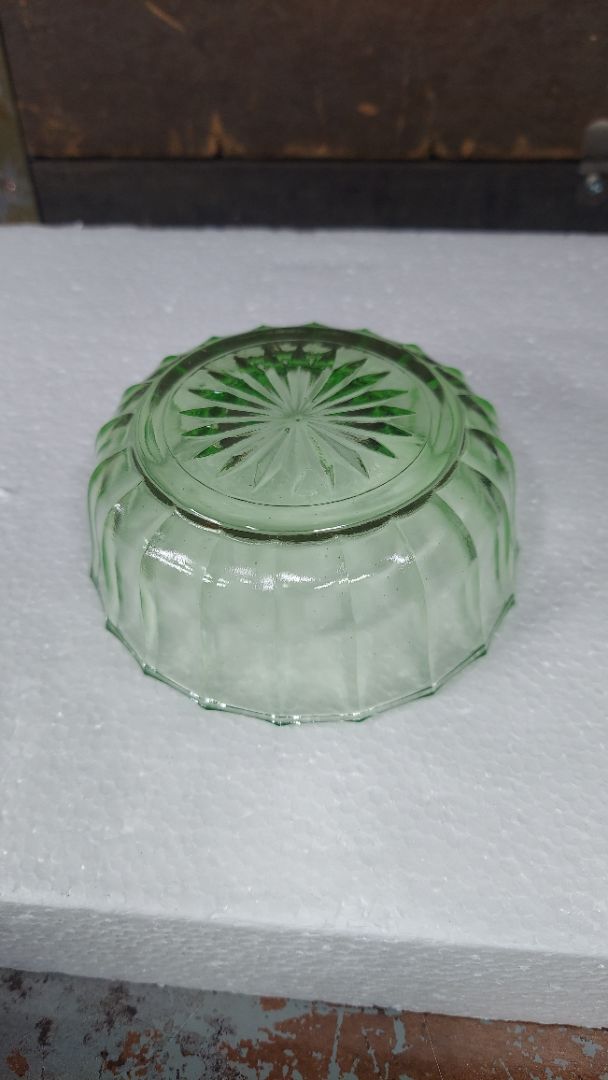 Uranium Vaseline Glass - Green Starburst Design dessert fruit bowl (As-Is)