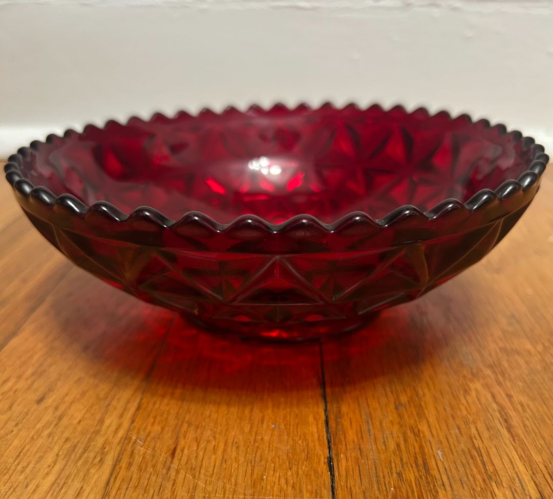 Vintage Ruby Red Bowl with diamond pattern. Possible Fostoria or Fenton