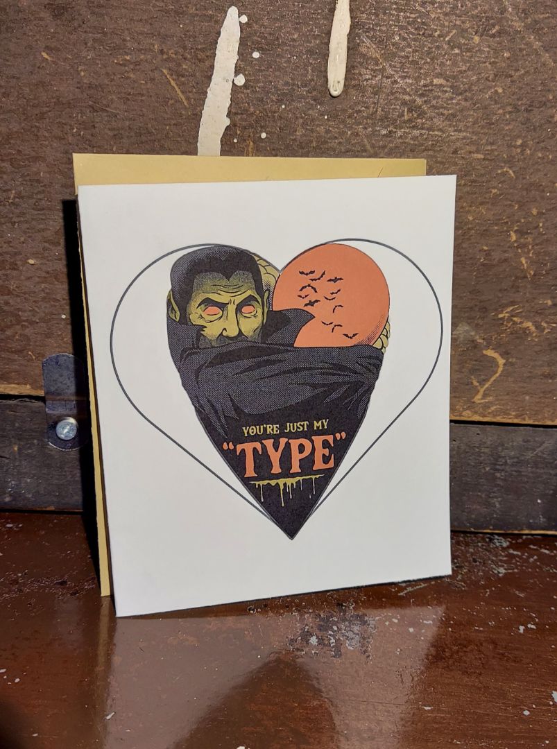 You're Just My Type - Valentine's Day Blank Greeting Card - Custom Made Rustic Cut With 5x4 Envelope