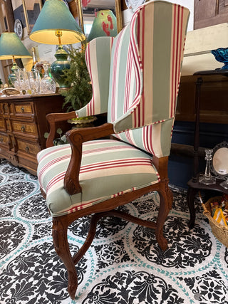 Wing Chair "Grandeur" Striped Satin Toille with Celadon Cream & Coral