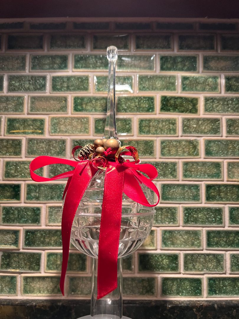 Vintage Christmas Tree Topper - Clear with Red Bow