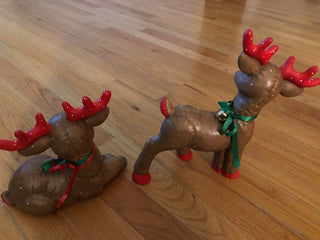 Vintage Ceramic Quilted Hand Painted Reindeer (Set of 2)