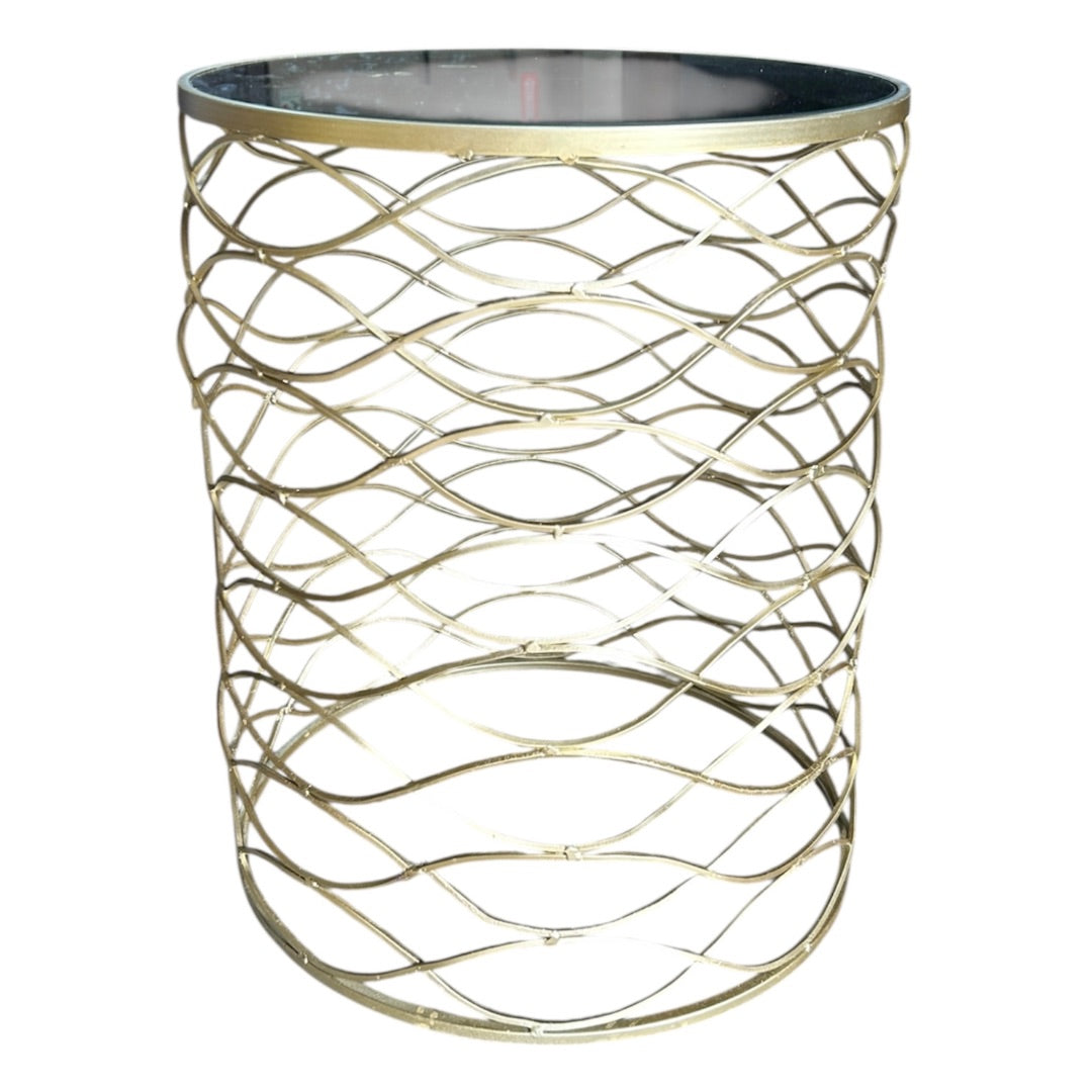 Mirror Top Gold Wavy Design Side Table