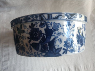 Vintage Japan Blue and White Birds Floral Ceramic Baking Dish