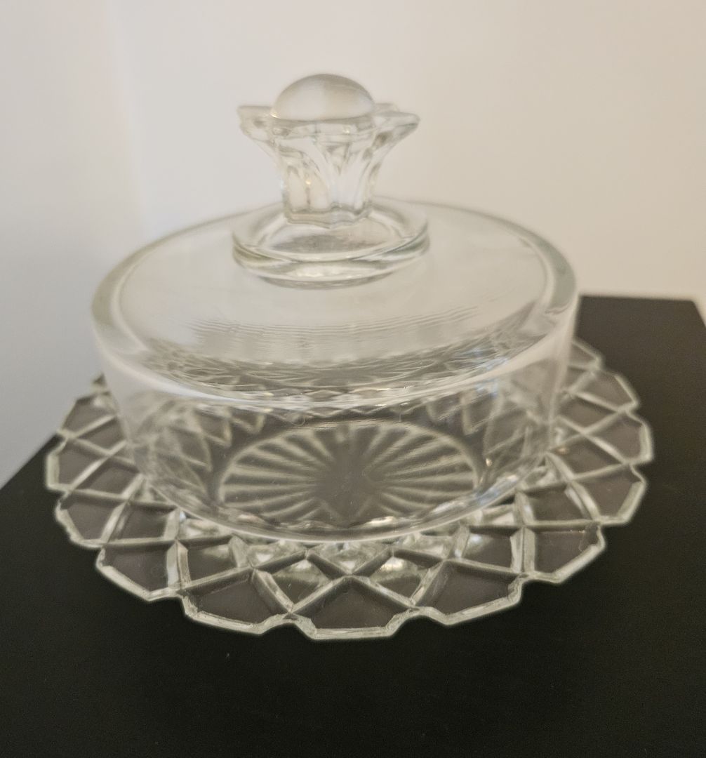 Vintage glass round covered dish for butter or cheese.