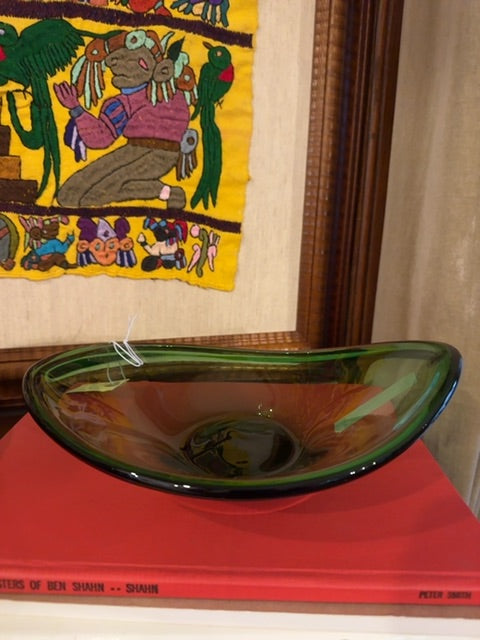 Vintage, ikea green thick bottom oval shaped Bowl design by Loterta Petterson. Produced 1999/2000 tags attached, handmade.