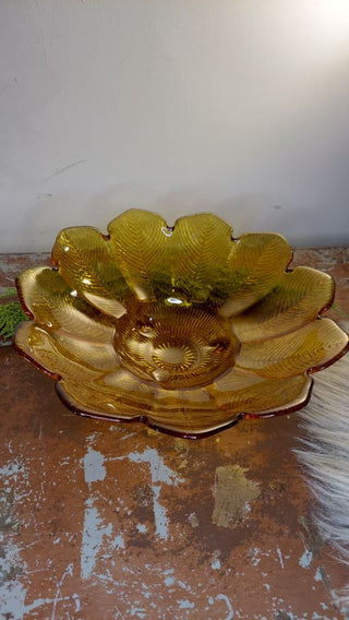 Midcentury Flower Fleather Footed Amber Art Glass Display Dish, gorgeous server too!