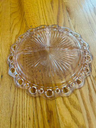 Pink Depression Glass Grill Plate Lace Edge 10.5"