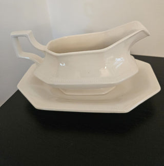 Antique Johnson Brothers Heritage White gravy boat with underplate. Set of 2