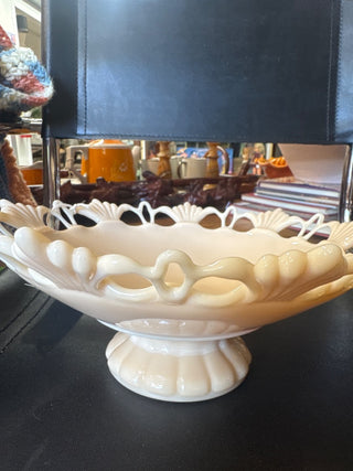 Vintage,Westmoreland milk glass, footed bowl with petal design