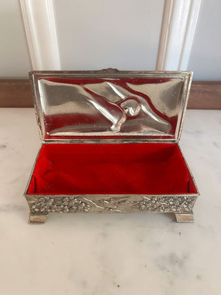 Silver-Plated Trinket Box w/ Embossed Peacock & Floral Designs