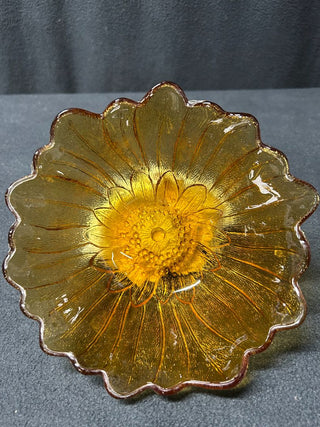 Vintage metallic flowers bowl and plates (set of 5) AS IS