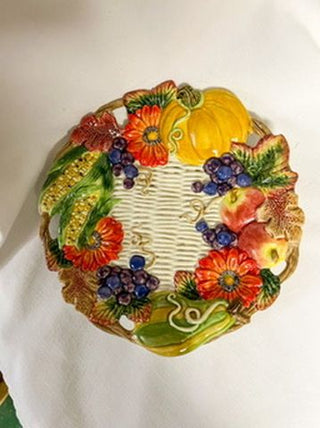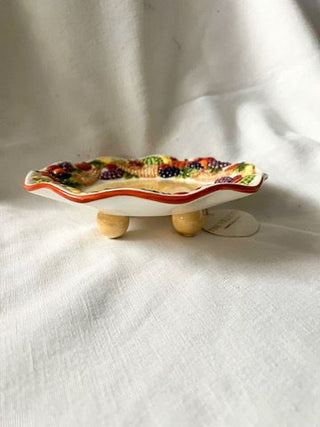 Vintage Whimsical Three Monkeys Holding Lily Pad Bowl Majolica Centerpiece
