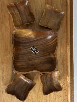 Vintage Leilani Monkey Pod Wood Salad Bowl Set (Set of 5)
